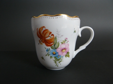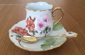 カップ & ソーサー ポーセリンペインティング、磁器上絵付 カップ & ソーサー オーク 野バラ すみれ 忘れな草 ブーケ/チューリップ,水仙 ミモザ 小花と金彩のリース ゆりのブーケ_マグ ブルーベリーティーフォーワン ゼラニウム